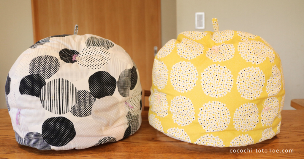 自分の好きな柄の布地で作れば、キッチンに出しっぱなしでも可愛くてテンションが上がります!日常使いができて、お料理がますます楽しくなりますね。